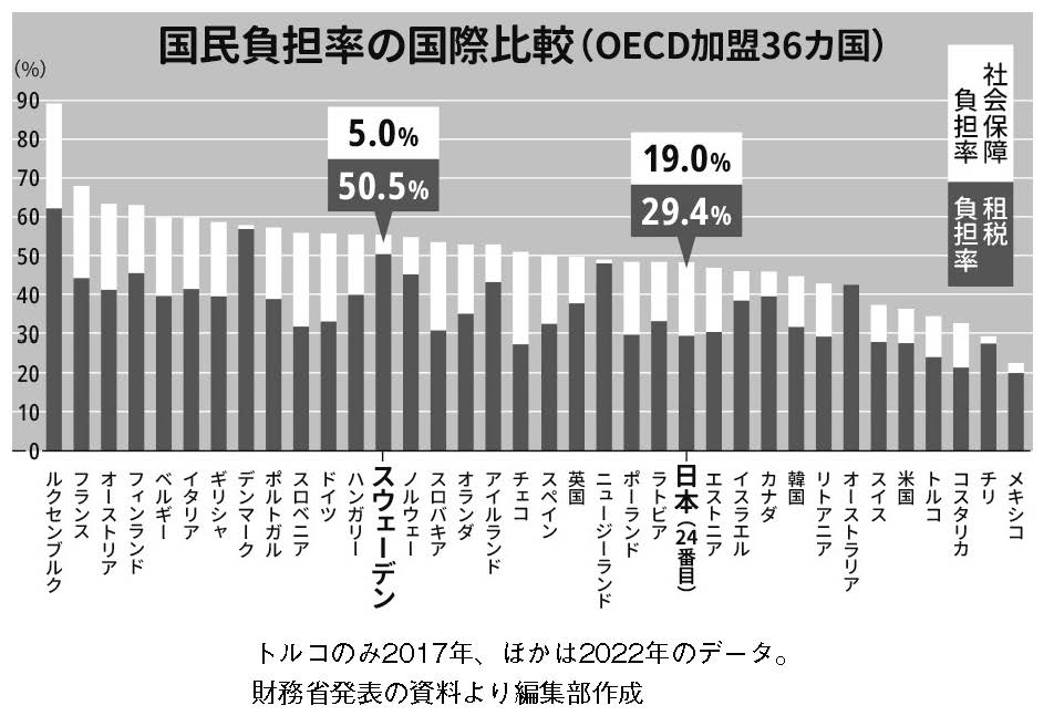 事実から入りましょう。上の図は国民負担率の国際比較です。